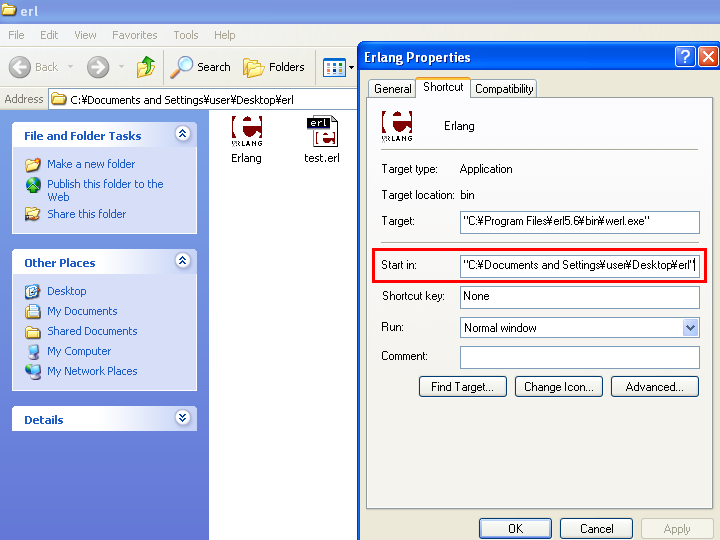 test.erlはerlangの実行フォルダと同じ場所になければいけないらしいあたりまえだ。